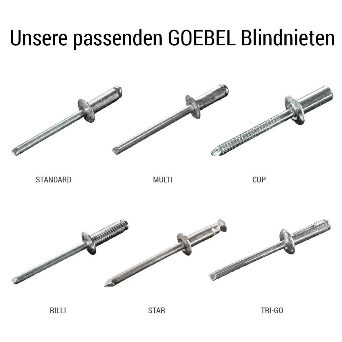 SKU: SKUFeUYKLJUDo Categories: Akku Blindnietsetzgeräte, Akku Setzgeräte, Blindniet Setzgeräte, Nietwerkzeuge Tag: Goebel Brand: Goebel