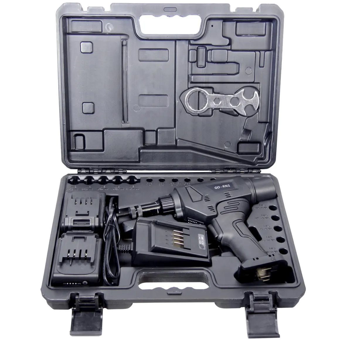 Akku-Tool GO-RN1 Akku Blindnietmuttern & Schrauben Setzwerkzeug mit bürstemlosem Motor 18V inkl. 2 Akku, Koffer und Zubehör mit Arbeitsbereich M3 – M8 alle Materialien Nietmuttern Gerät Nietmutternzange