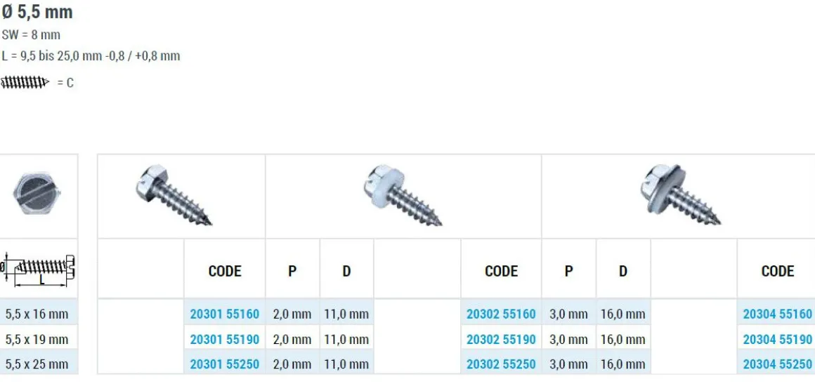 | Produkttyp | Sechskant–Blechschrauben mit LS (Längsschlitz) |