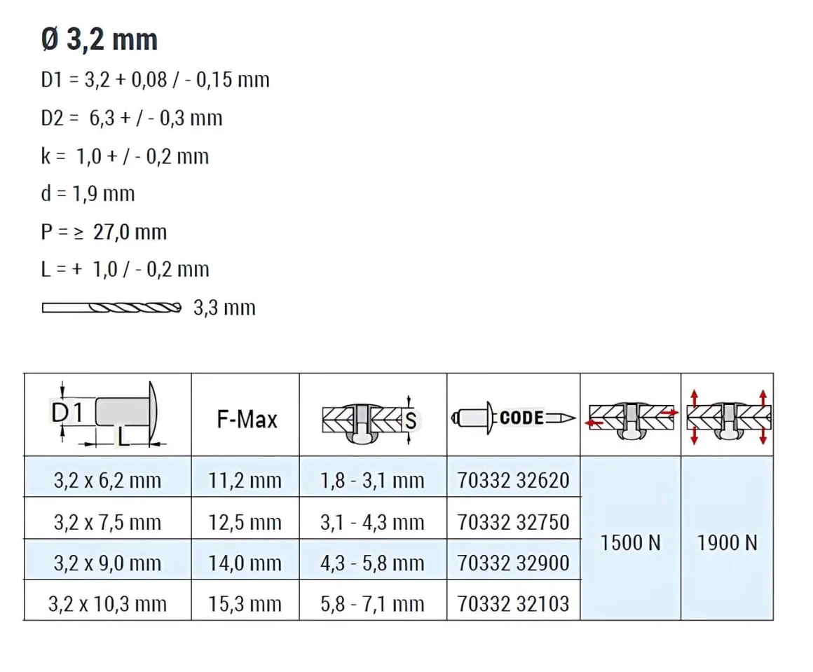 | D1 Toleranz | 3,2 + 0,08 / – 0,15 mm |