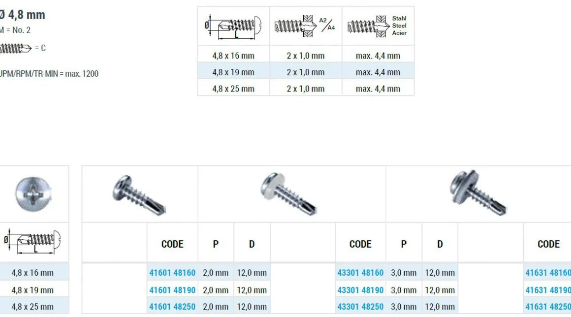 | Artikel | DIN 7504 M Linsenkopf–Bohrschrauben C1 GL 4,8x19 mm |