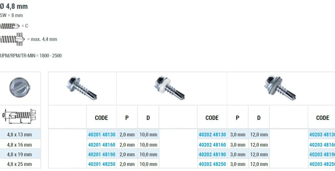 | Artikel | DIN 7504 L Sechskant–Bohrschrauben mit LS ST GL PA 4,8x16 mm |
