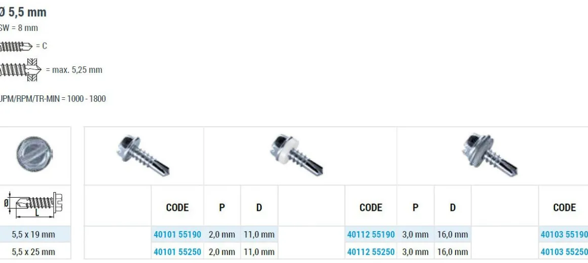 | Artikel | DIN 7504 L Sechskant–Bohrschrauben mit Dichtscheibe LS VERZ S16 5,5x19 mm |