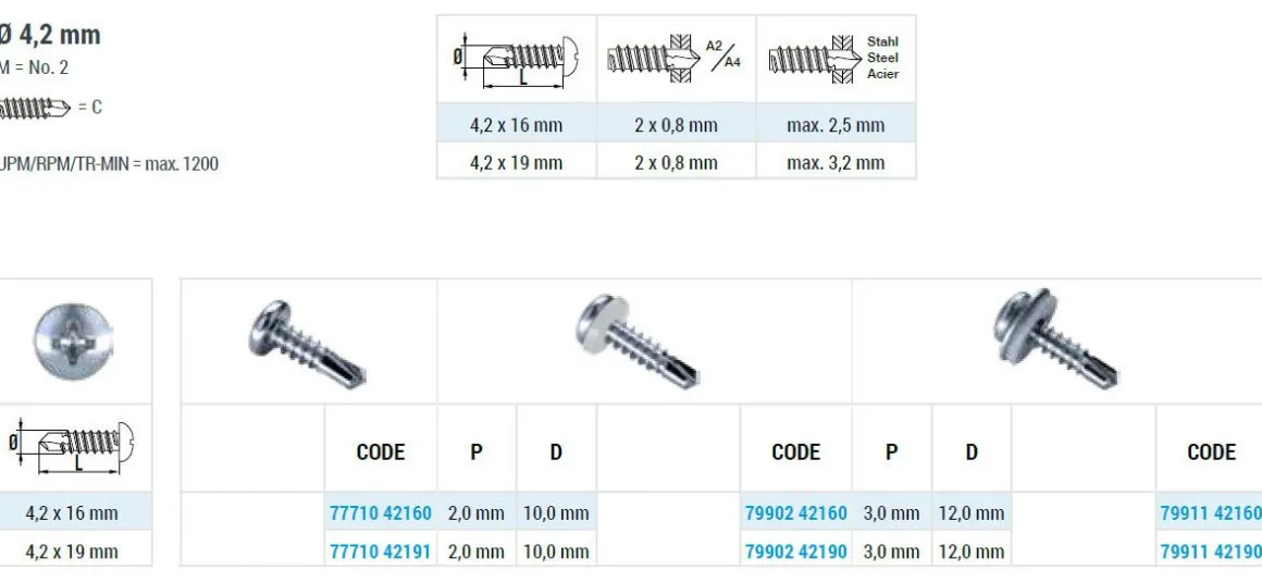 | Artikel | DIN 7504 M Linsenkopf–Bohrschrauben mit Dichtscheibe A2 GL R12 4,2x16 mm |