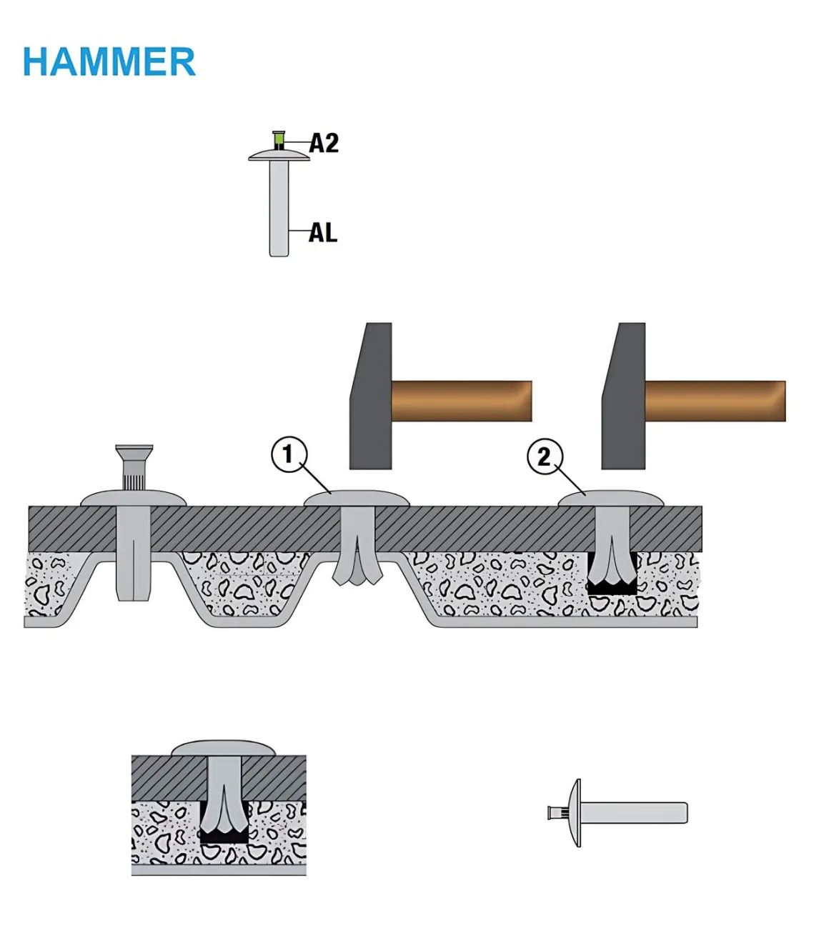 | Artikel | HAMMER Hammerschlag Blindniete AL/A2 – Flachrundkopf – 4,8x18 mm |