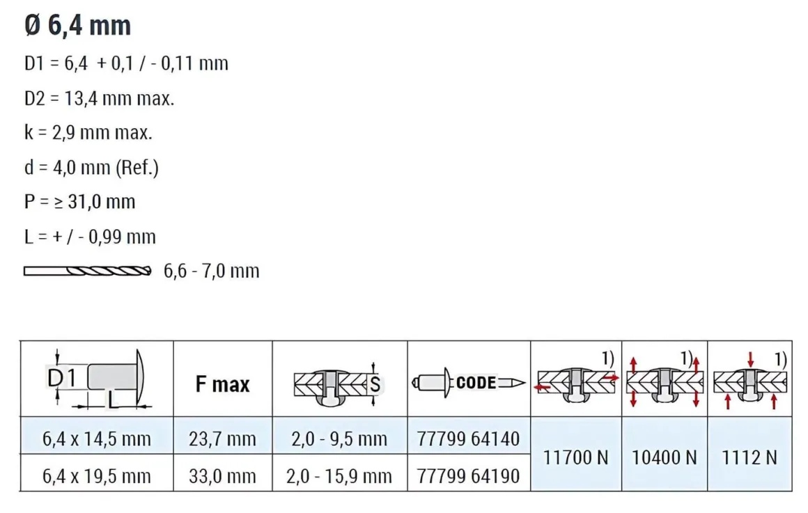 | Artikel | Hochfeste Blindniete M–LOCK mit konusförmigen Schließkopf A2/A2 – Flachkopf – 6,4x14,5 mm |