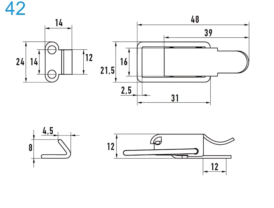 Be the first to review “Spannverschluss Aluminium 42 kleines Kappenschloss mit gerader Grundtplatte und Gegenhaken – Kistenverschluss – Kofferverschluss – Hebel Verschluss” Antworten abbrechen