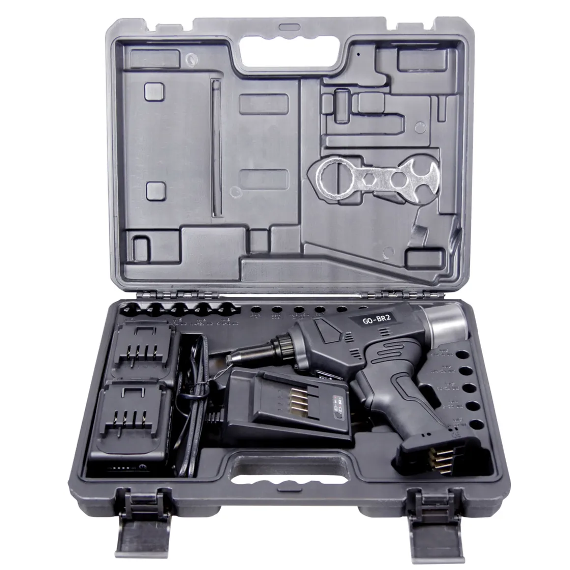 Akku Nieter Blindnietgerät | Nietgerät | GO-BR2 Hochfeste Blindniete Setzwerkzeug mit bürstenlosem Motor 18V inkl. 2 Akku, Koffer und Zubehör Arbeitsbereich ø 3,0 – 6,4 mm alle Materialien