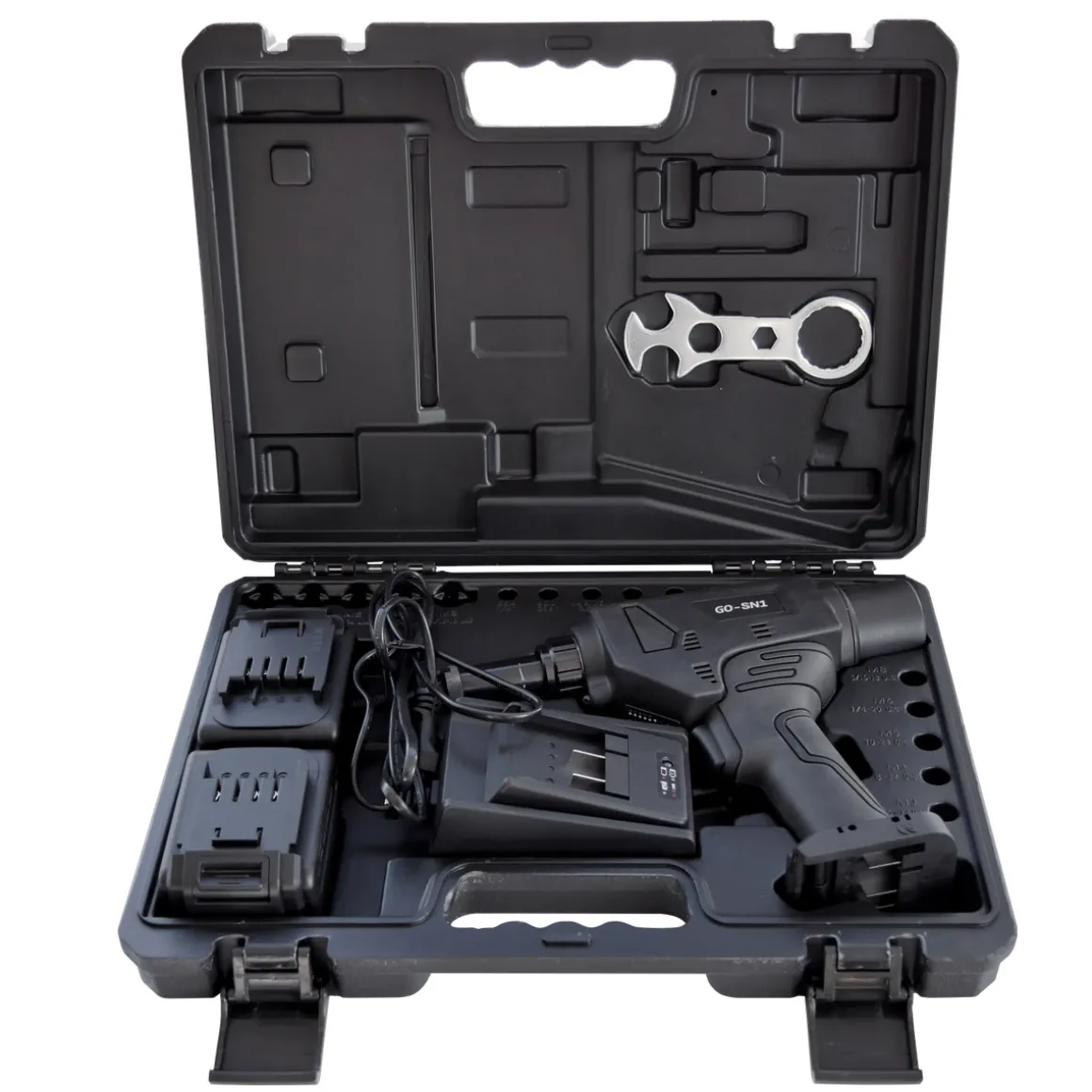 Akku Spreiz Blindnietmuttern Setzwerkzeug Setzgerät GO-SN1 mit bürstemlosem Motor 18V inkl. 2 Akku, Koffer und Zubehör mit Arbeitsbereich M5 / M6 / M8 / M10 alle Materialien