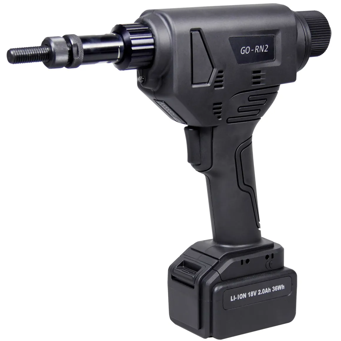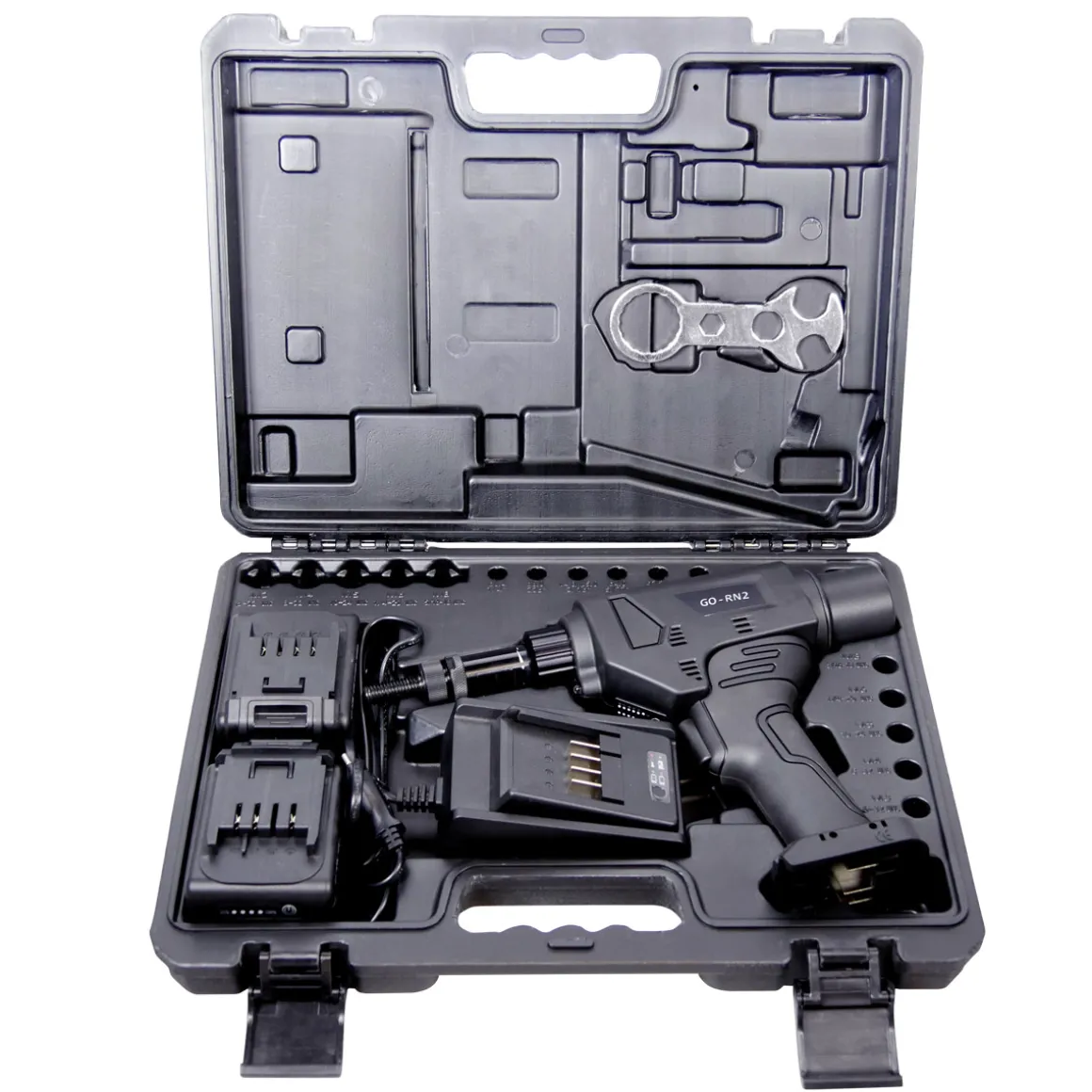 Akku-Tool GO-RN2 Akku Blindnietmuttern- & Schrauben Setzwerkzeug mit bürstemlosem Motor 18V inkl. 2 Akku, Koffer und Zubehör mit Arbeitsbereich M8 – M10 alle Materialien, M8 – M12 Aluminium und Stahl