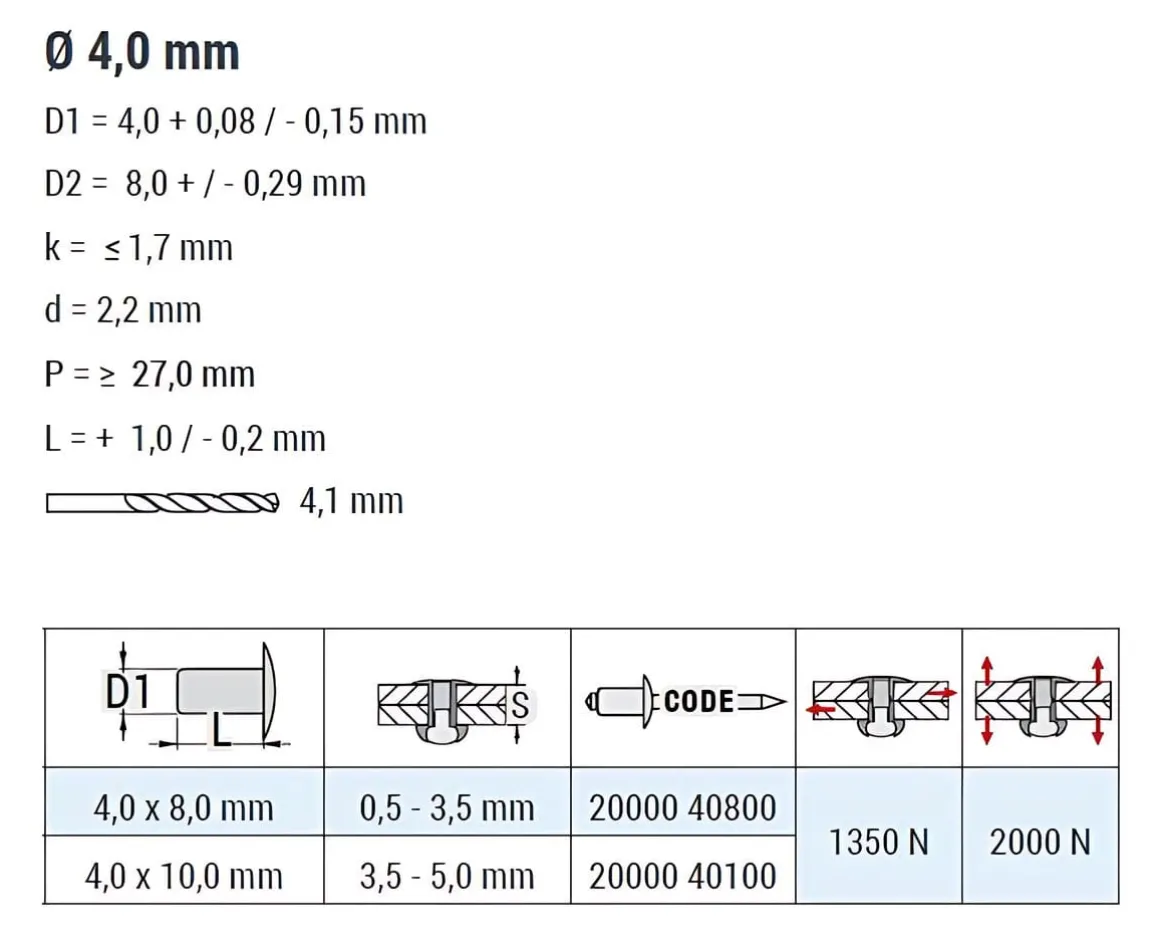 | Artikel | CUP Dicht–Becherblindniete CU/A2 – Flachkopf – 4,0x8 mm |
