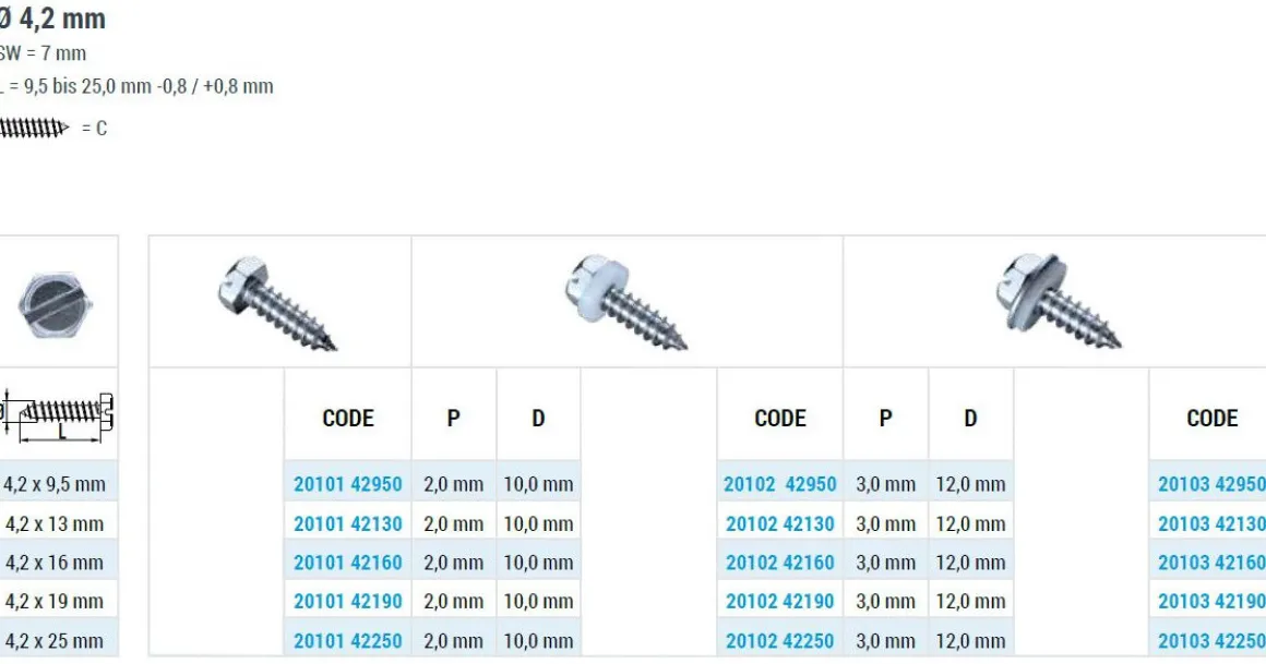 | Artikel | DIN 7976 – ISO 1479 Sechskant–Blechschrauben VERZ C PA 4,2x19 mm |