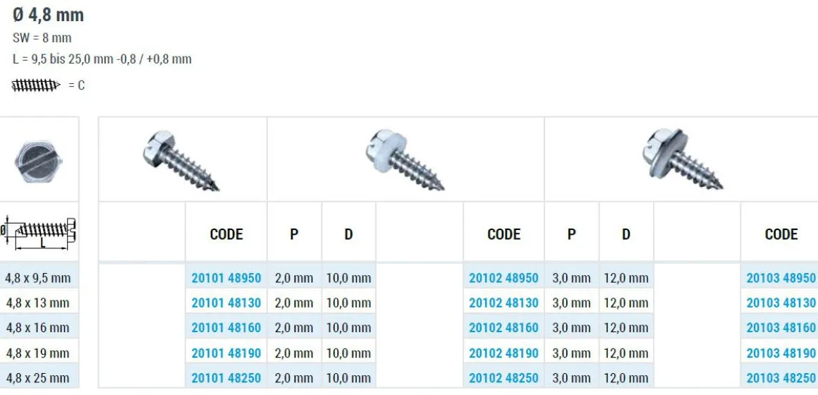 | Artikel | DIN 7976 – ISO 1479 Sechskant–Blechschrauben VERZ C PA 4,8x16 mm |