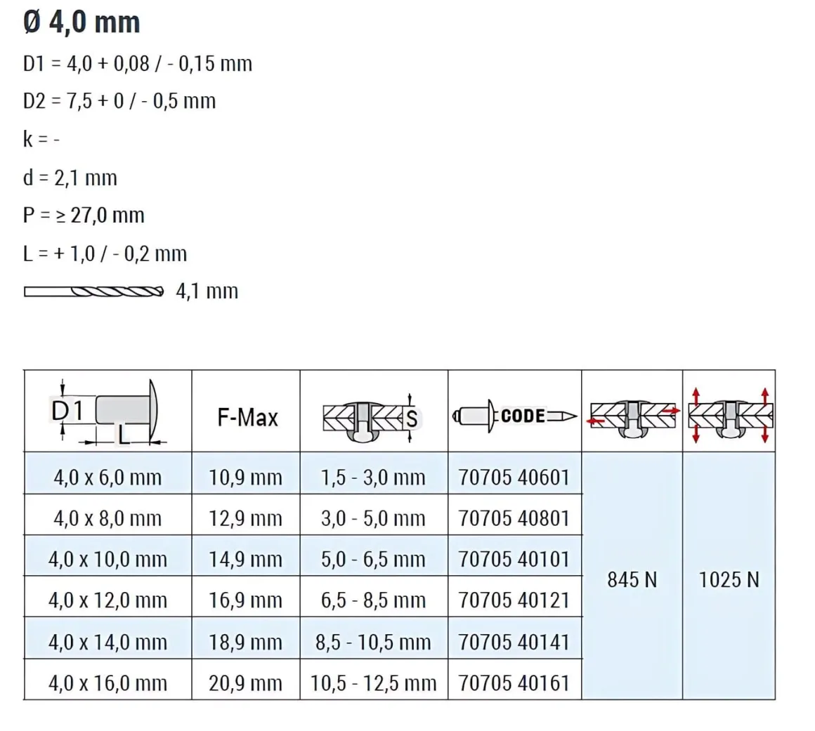 | Artikel | Blindniete STANDARD AL/AL – Senkkopf – 4,0x10 mm |
