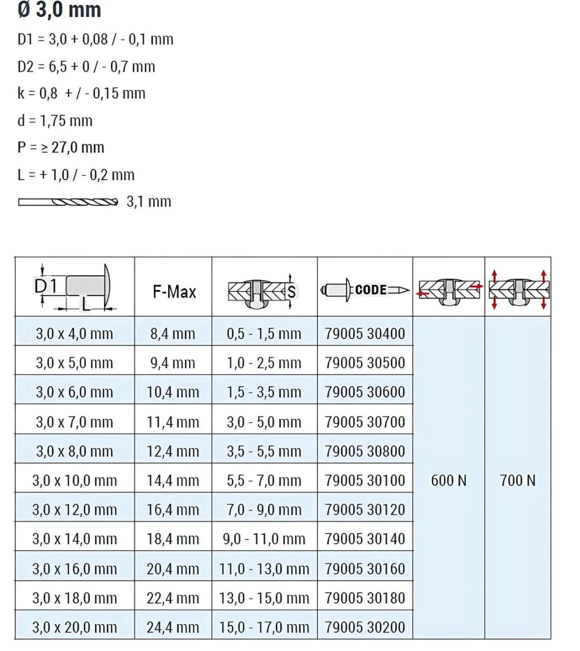 | Länge Nietdorn (P) | ≥ 27,0 mm |
