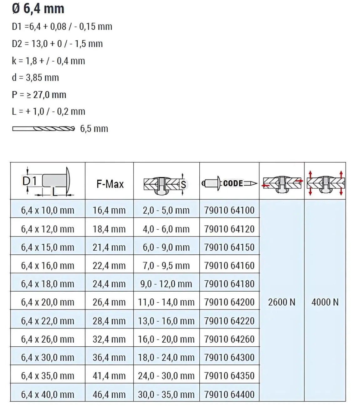 | D1 Toleranz | 6,4 + 0,08 / – 0,15 mm |