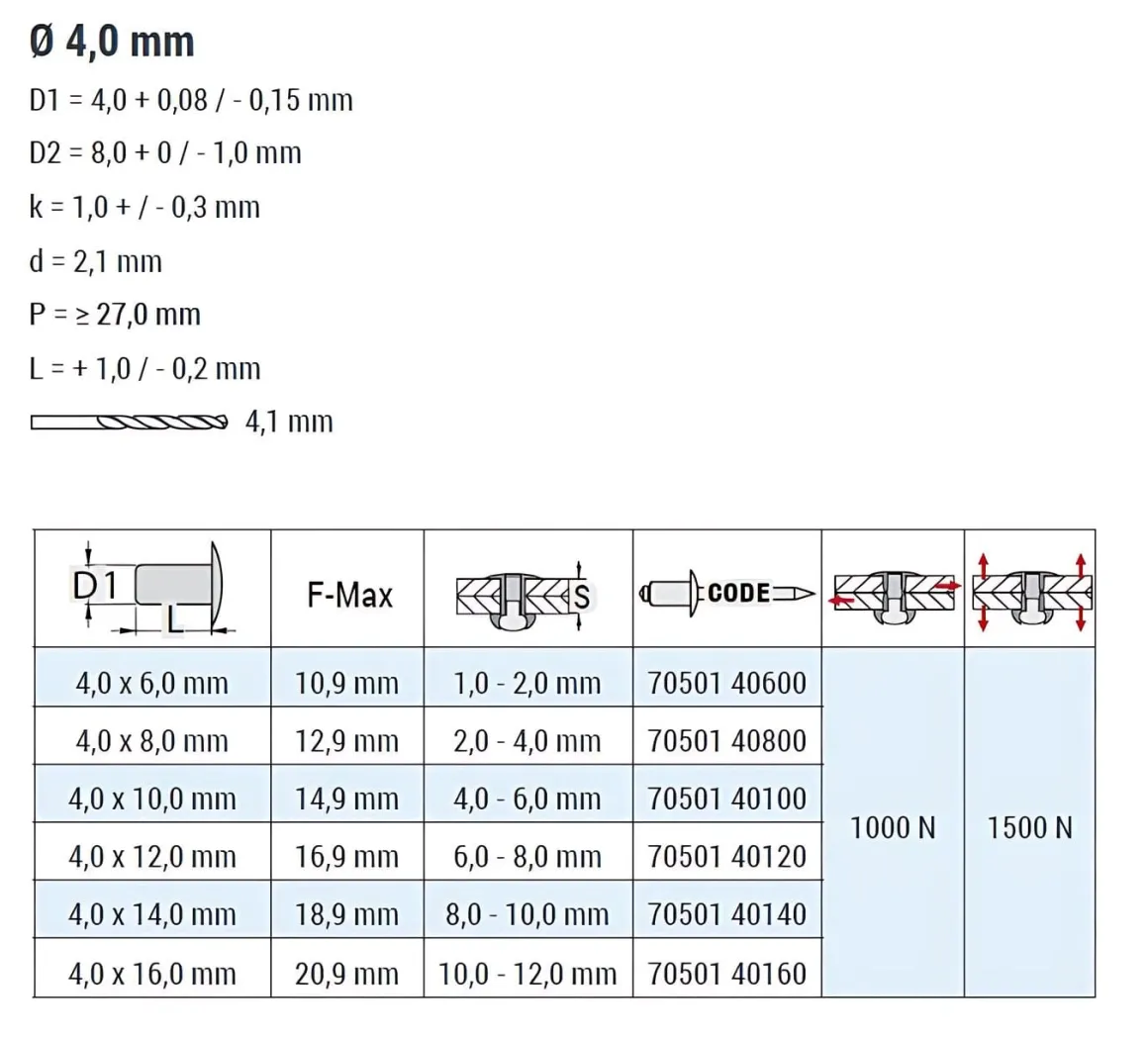 | Artikel | Blindniete STANDARD CU/ST – Flachkopf – 4,0x16 mm |
