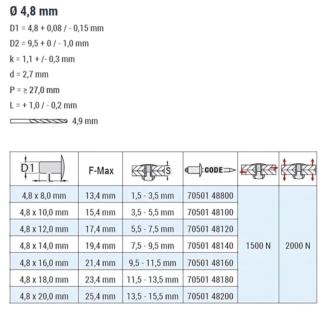 | Artikel | Blindniete STANDARD CU/ST – Flachkopf – 4,8x14 mm |