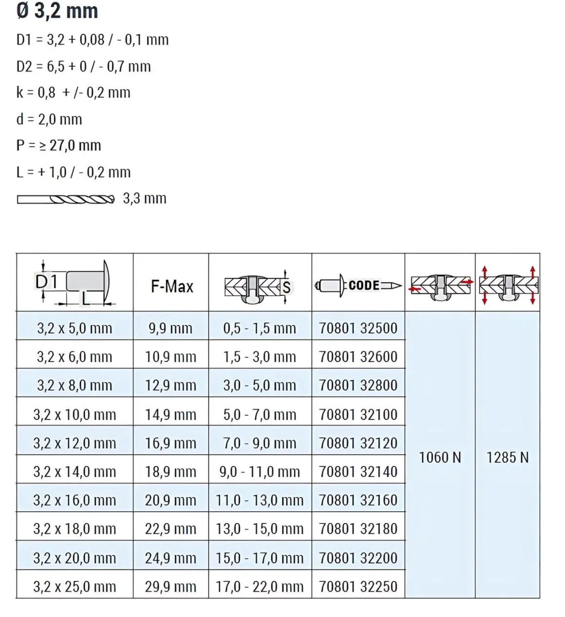 | Artikel | Blindniete STANDARD ST/ST – Flachkopf – 3,2x5 mm |