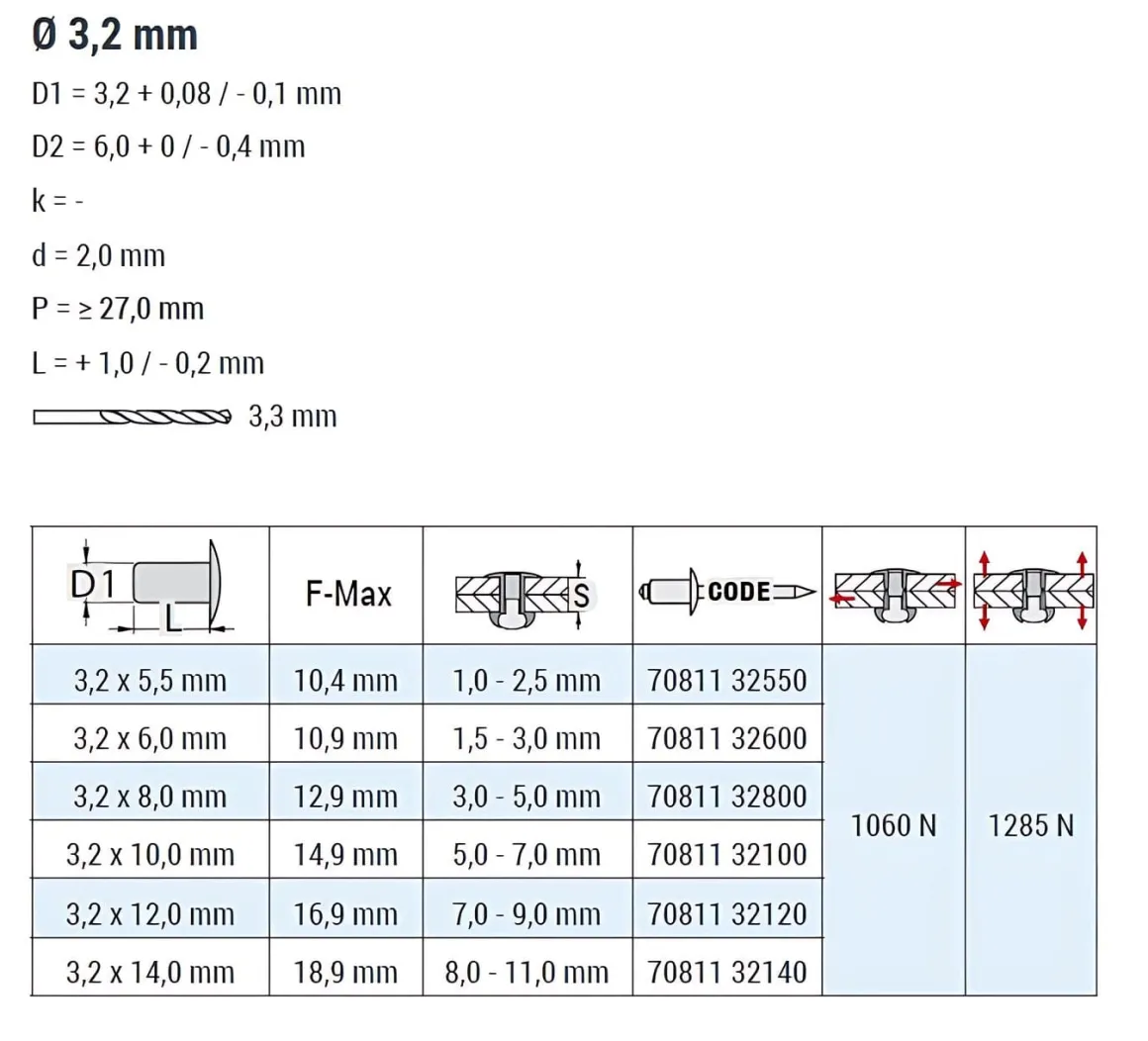| Artikel | Blindniete STANDARD ST/ST – Senkkopf – 3,2x8 mm |