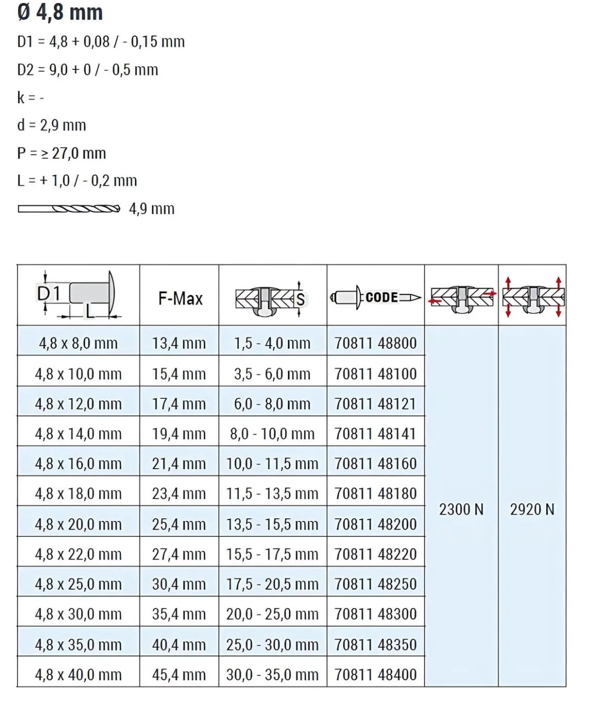 | Artikel | Blindniete STANDARD ST/ST – Senkkopf – 4,8x16 mm |