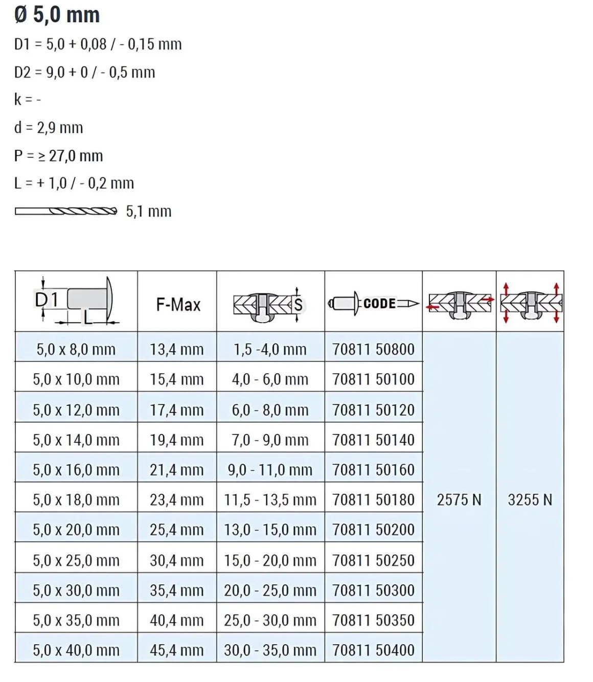| Artikel | Blindniete STANDARD ST/ST – Senkkopf – 5,0x10 mm |