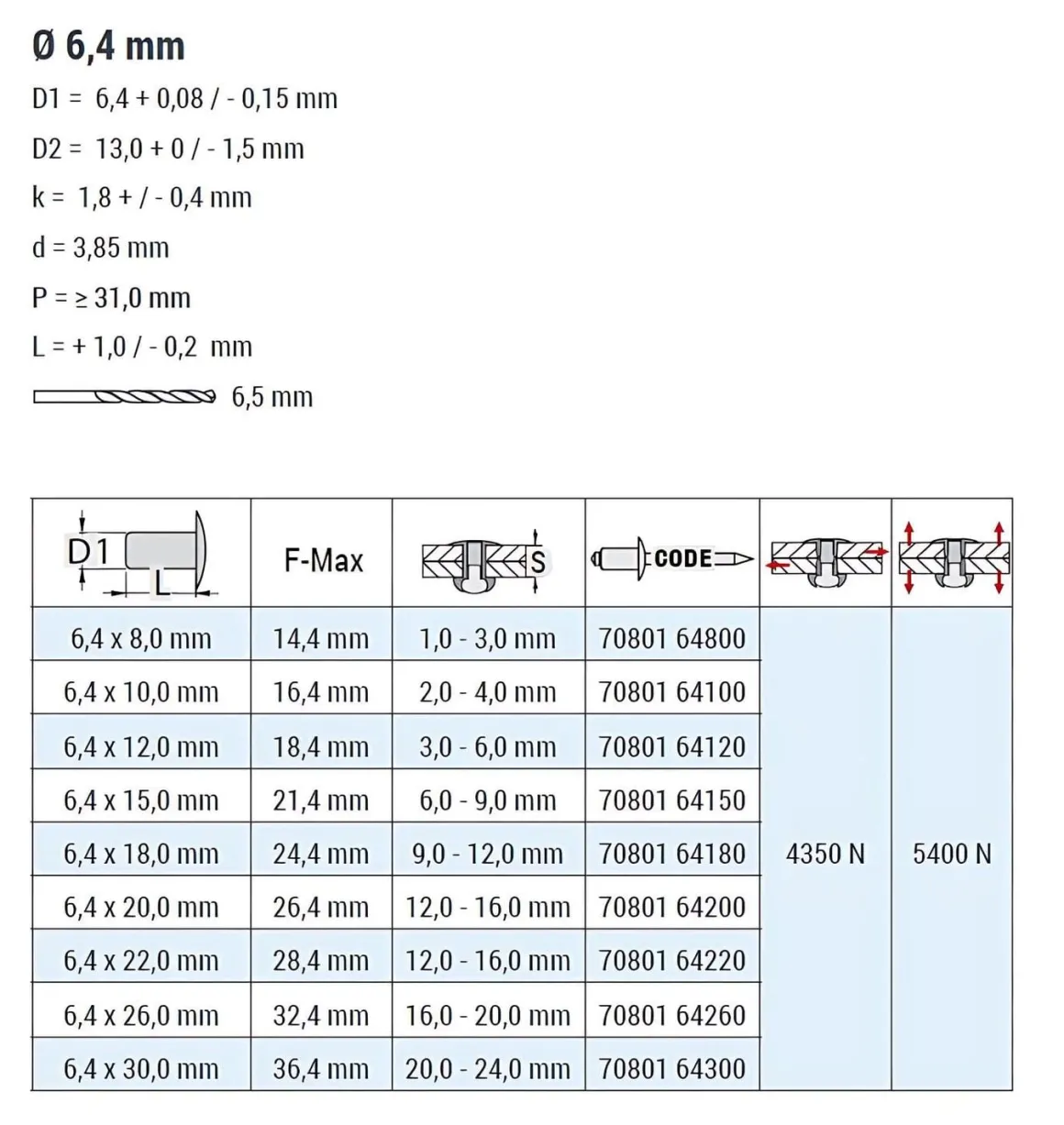 | Artikel | Blindniete STANDARD ST/ST – Flachkopf – 6,4x12 mm |