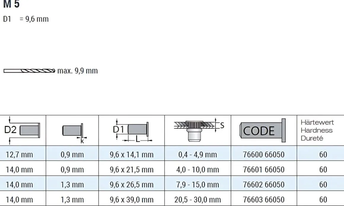 | Produkttyp | Blindnietmuttern aus EPDM |