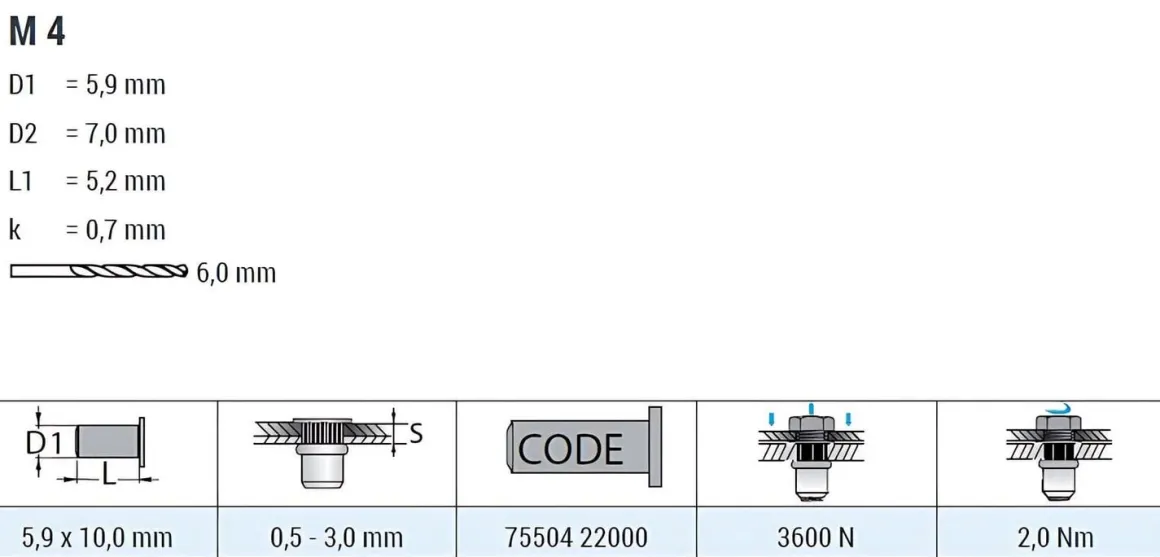 | Produkttyp | Blindnietmuttern, Einziehmutter, Einnietmuttern |