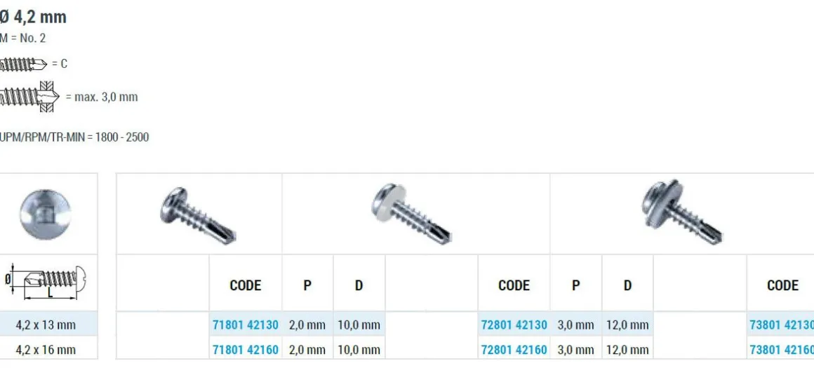 | Produkttyp | Linsenkopf–Bohrschrauben (alle) |