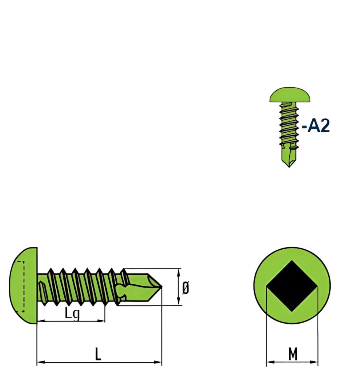 Bohrschrauben Linsenkopf (Ø x L) 4,2 x 16,0 mm Edelstahl A2 DIN7504SQ Werksnorm Linsenkopf Innenvierkant – Selbstbohrende Schraube – Selbstschneidende Bohrschraube – Selbstbohrschrauben