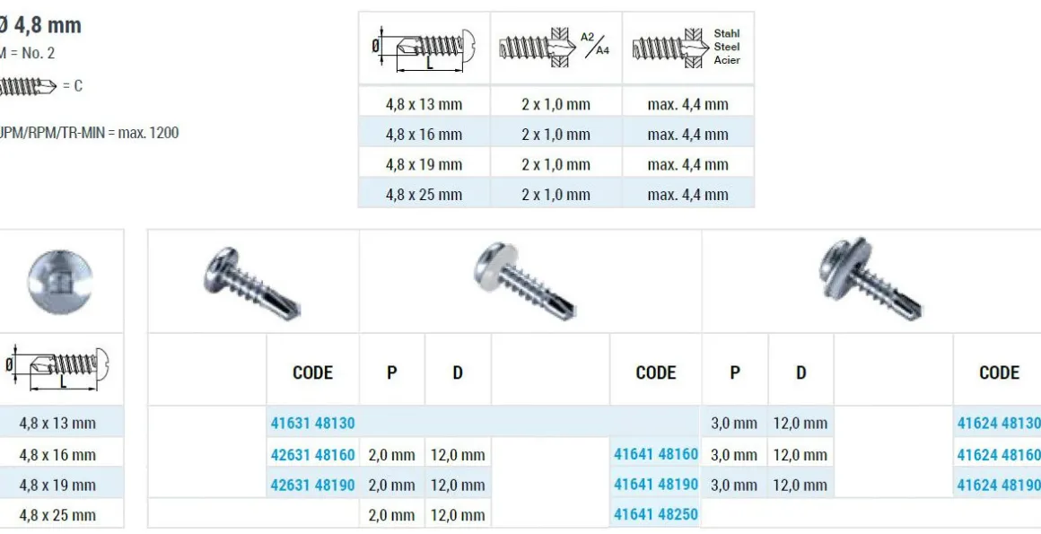 | Artikel | DIN 7504 SQ Linsenkopf–Bohrschrauben (SQ) C1 GL 4,8x16 mm inkl. SQ Bit 50mm |