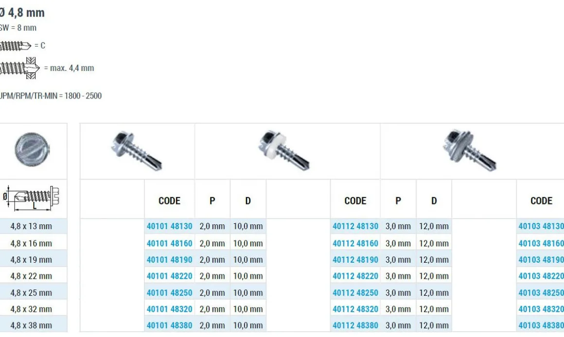 | Artikel | DIN 7504 L Sechskant–Bohrschrauben mit LS VERZ 4,8x13 mm |