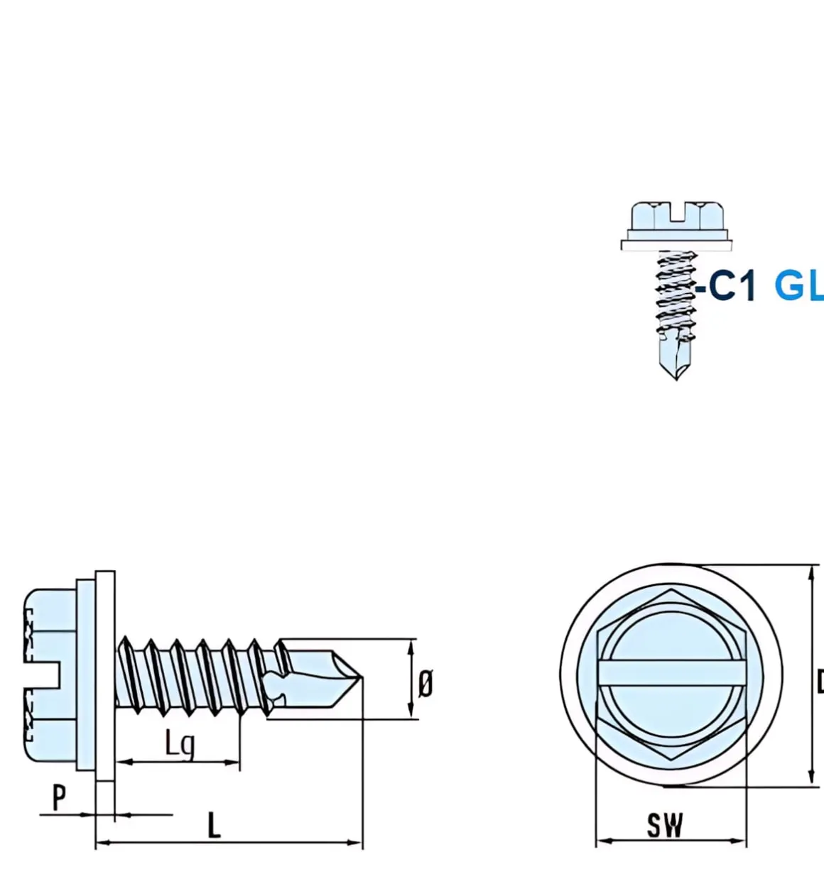 | Artikel | DIN 7504 L Sechskant–Bohrschrauben mit LS C1 GL PA 4,2x19 mm |