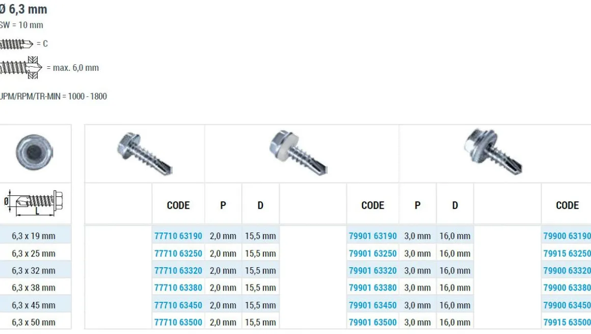 | Artikel | DIN 7504 K Sechskant–Bohrschrauben mit Dichtscheibe A2 R16 6,3x19 mm – für Aluminium–Bleche – |
