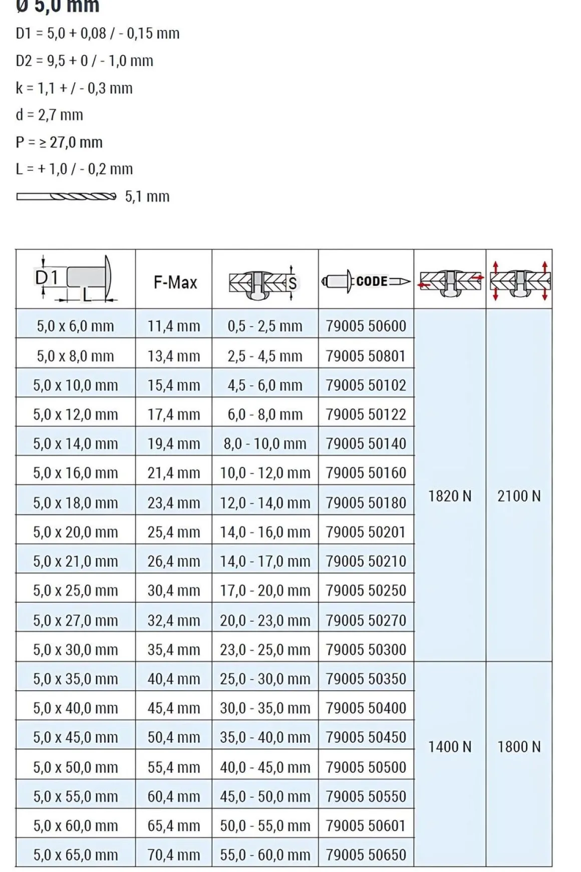 | Artikel | Farbige Blindniete RAINBOW STANDARD– RAL 9005 AL/ST – Flachkopf – 5,0x55 mm |