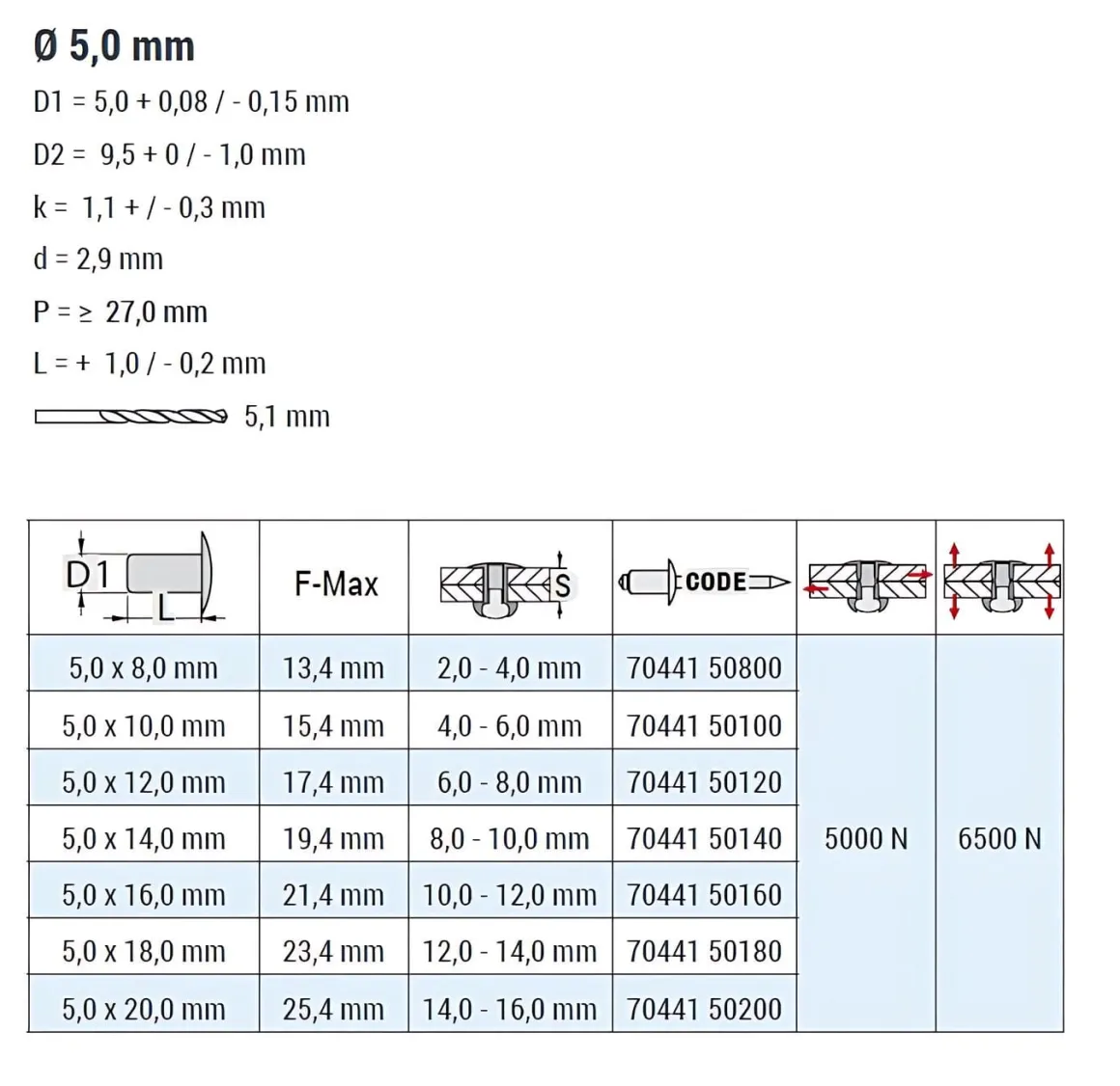 | Artikel | Blindniete STANDARD A4/A4 – Flachkopf – 5,0x16 mm |