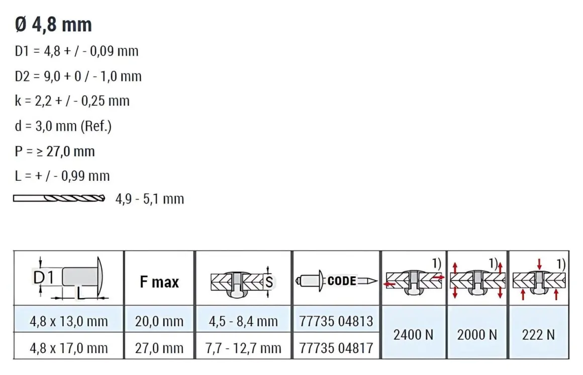 | D1 Toleranz | 4,8 + / – 0,09 mm |