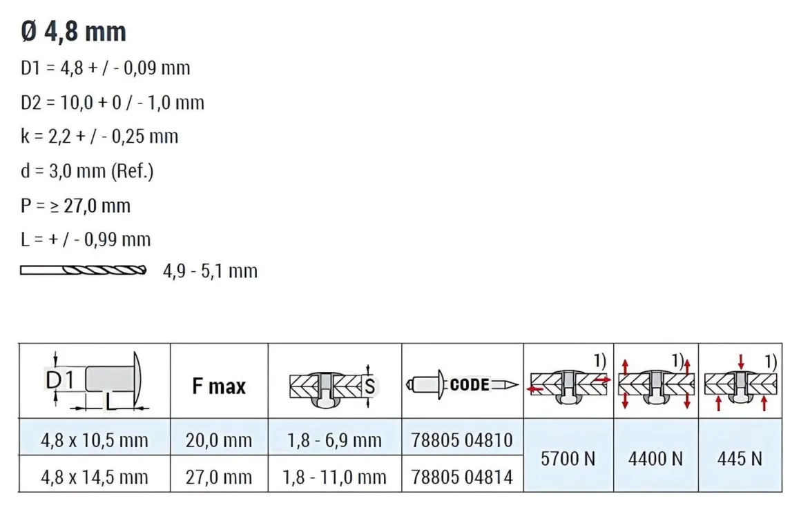 | Artikel | Hochfeste Blindniete GO–LOCK mit konusförmigen Schließkopf ST/ST – Flachkopf – 4,8x10,5 mm |