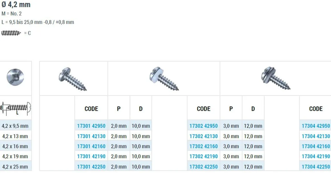 | Produkttyp | Linsenkopf–Blechschrauben (alle) |