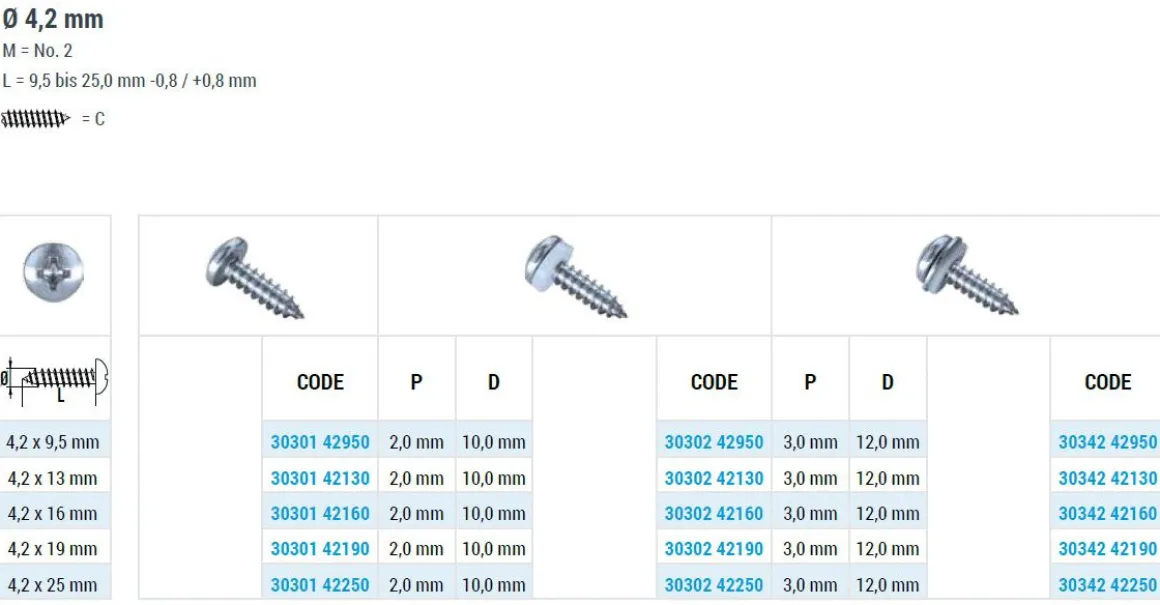 | Artikel | DIN 7981 – ISO 7049 Linsenkopf–Blechschrauben Edelstahl A2 C 4,2x16 mm |