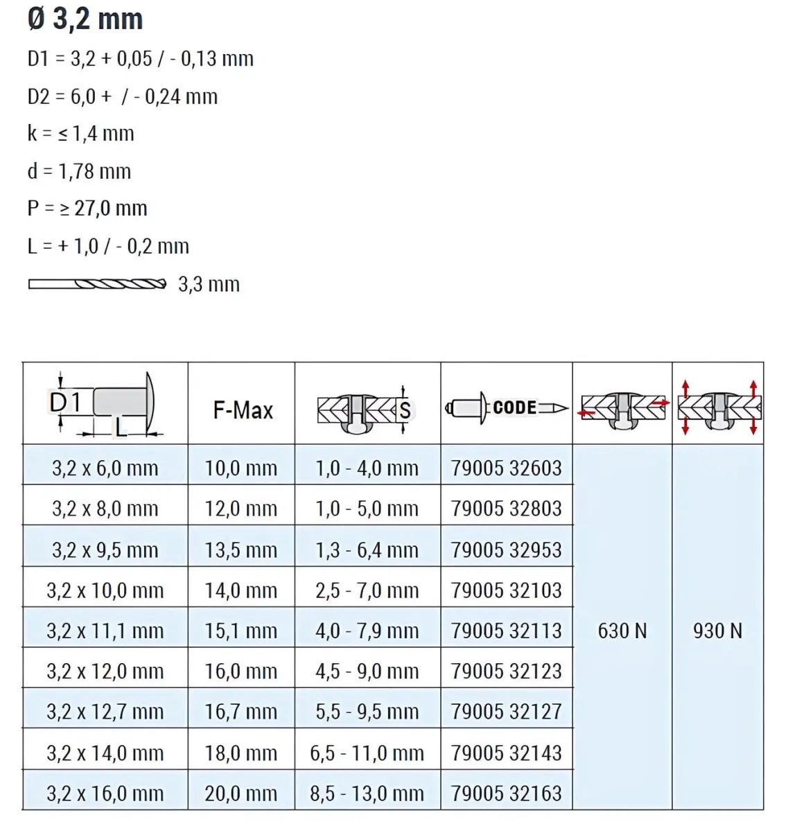 | D1 Toleranz | 3,2 + 0,05 / – 0,13 mm |