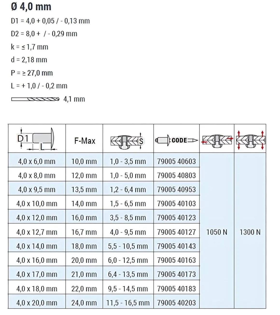 | Produkttyp | Farbige Mehrbereichs–Blindniete |