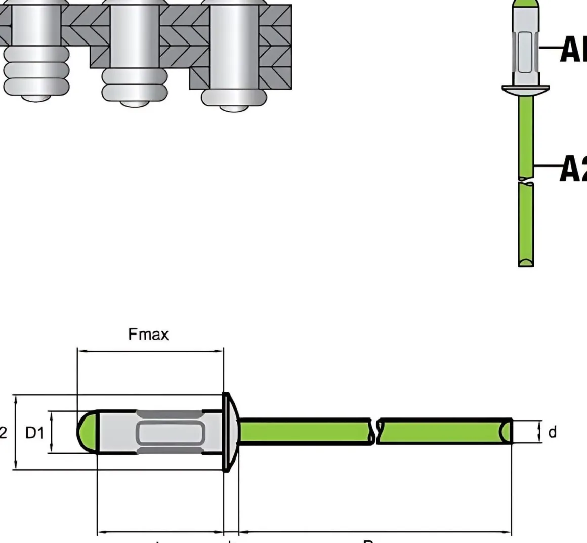 | Artikel | Mehrbereichs–Blindniete Mehrbereichsblindniete MULTI AL/A2 – Flachkopf – 3,2x11,1 mm |