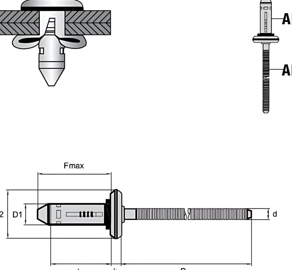 | Artikel | Preßlaschen–Blindniete TRE–GO mit EPDM AL/AL – Flachkopf – 5,2x28,6 mm |
