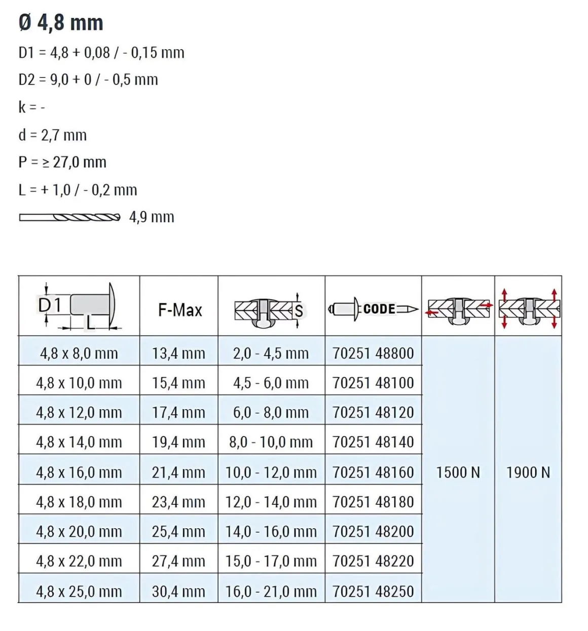 | D1 Toleranz | 4,8 + 0,08 / – 0,15 mm |