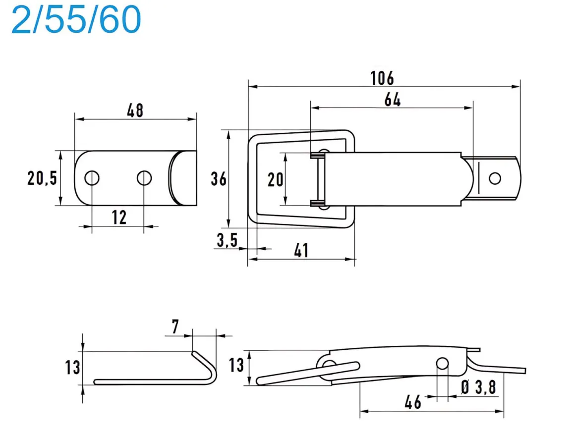 Be the first to review “Spannverschluss Edelstahl A2 2/55/60 Standard Kappenschloss mit gewölbter Grundtplatte und Gegenhaken – Kistenverschluss – Kofferverschluss – Hebel Verschluss” Antworten abbrechen