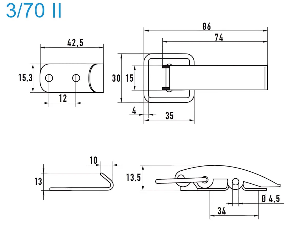 | Artikel | Spannverschlüsse K. Schloß A2 3/70 II Nietloch 3,5 mm |