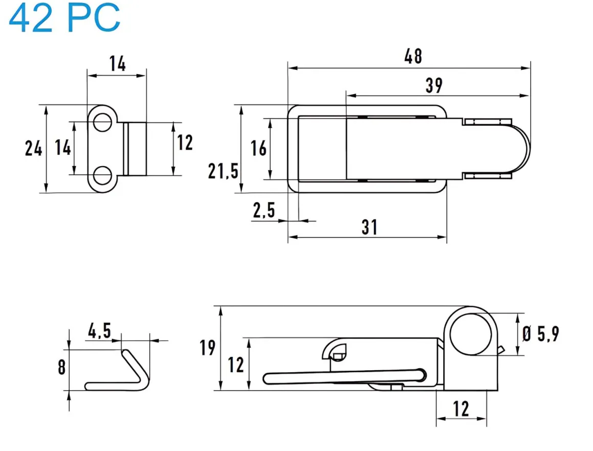 Be the first to review “Spannverschluss mit Verschlussvorrichtung Edelstahl A2 42 PC kleines Kappenschloss mit Verschlussvorrichtung gerader Grundtplatte und Gegenhaken – Kistenverschluss – Kofferverschluss – Hebel Verschluss” Antworten abbrechen