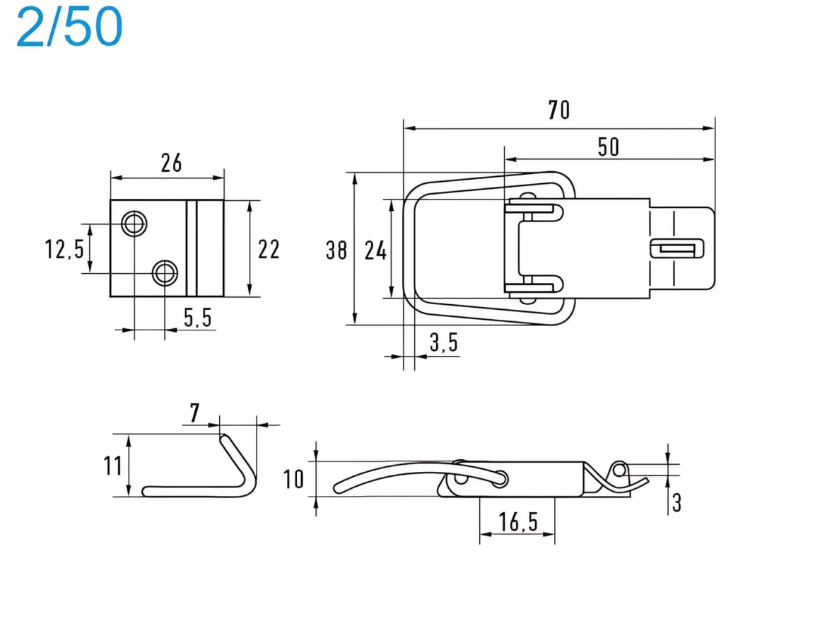Spannverschluss mit Verschlussvorrichtung Stahl verzinkt 2/50 kleines Kappenschloss selbstschliessend mit Verschlussvorrichtung gerader Grundtplatte und Gegenhaken – Kistenverschluss – Kofferverschluss – Hebel Verschluss